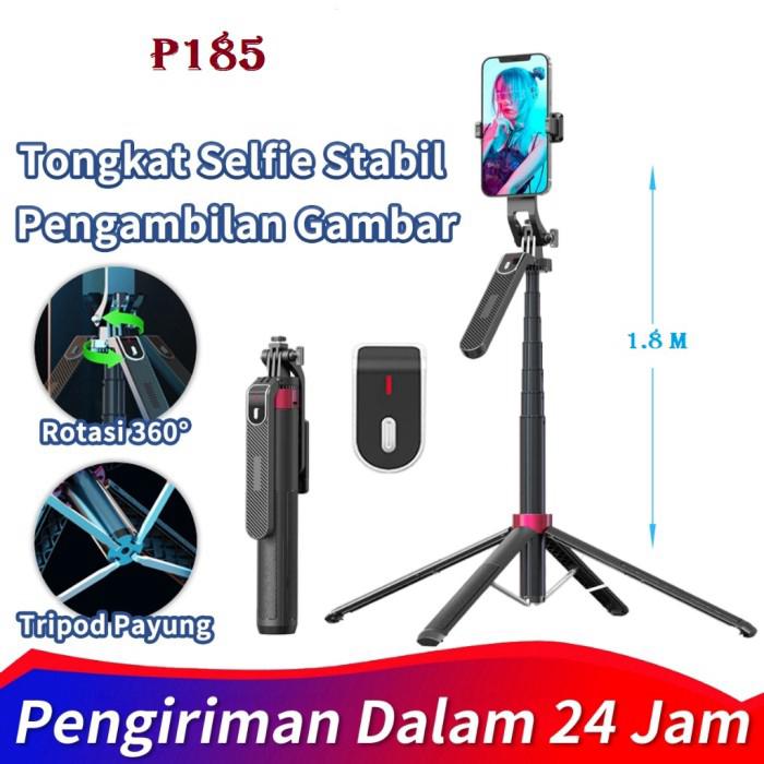 SMARTCOM - Tripod Bluetooth P185 Tongsis Selfie Stick Remote Control Hand Stabilizer HP 360 derajat