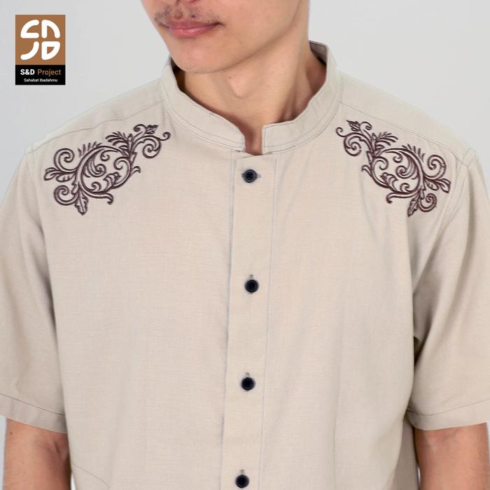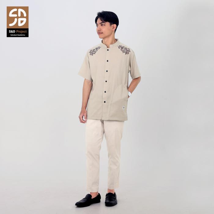 S&D PROJECT Baju Koko Muslim Kava Bahan Linen Rayon Premium Warna Beige M-XL Untuk Pria Dewasa Lengan Pendek - Beige M