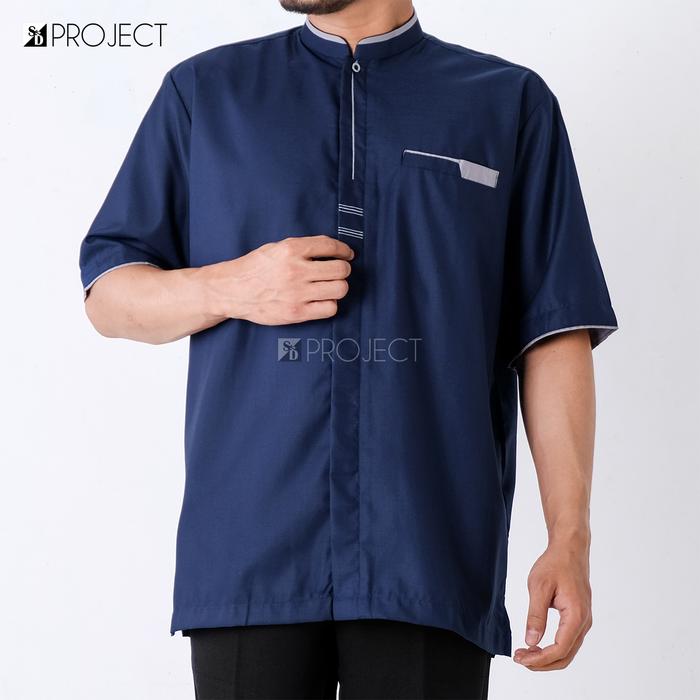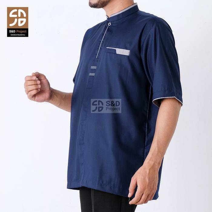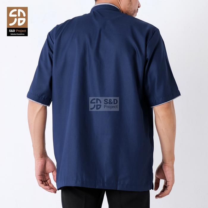 S&D PROJECT Baju Koko Muslim Bahan Toyobo Warna Navy Jumbo S-4XL Untuk Pria Dewasa Lengan Pendek 04