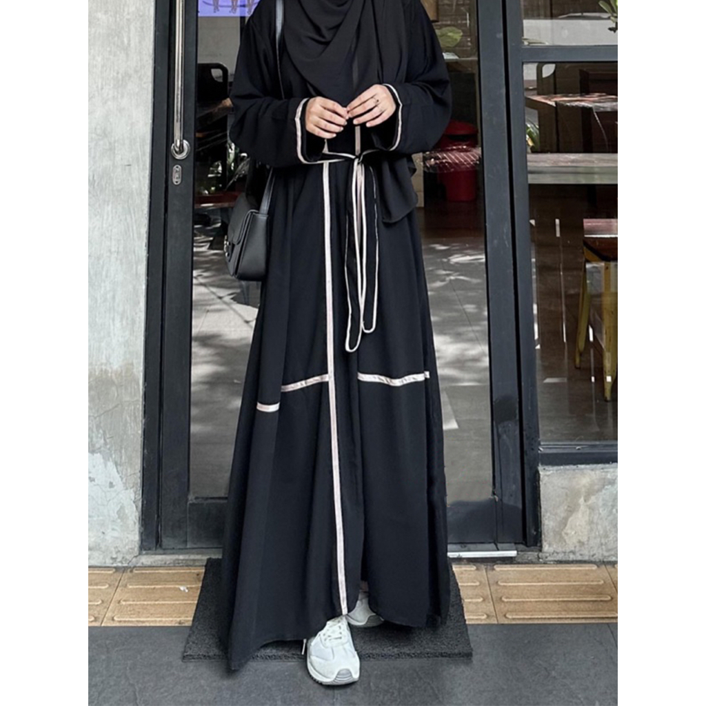 Abaya Hitam Garis Putih Syar'i Muslim Arab Modis Remaja Kekinian Terbaru JMR-HK