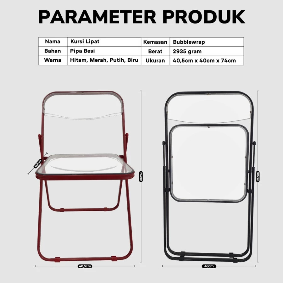 Kursi Lipat Kursi Outdoor Indoor Kursi Plastik Acrylic Clear Transparent Design Nordic Classic Portable Folding Chair Te