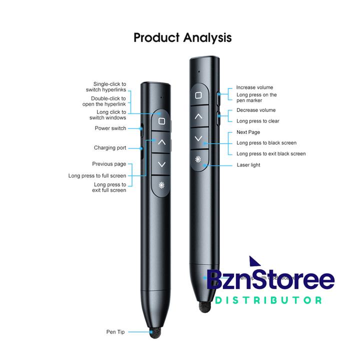 Wireless Laser Hijau Green Presenter Pointer USB C + Touch Screen Pen / Laser Pointer persentasi
