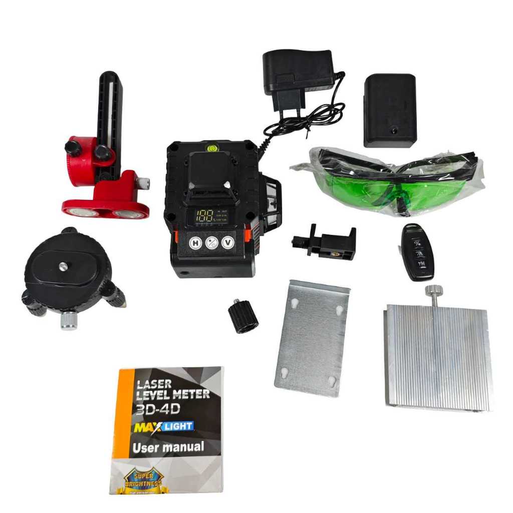 MALL HILDA Laser Level 4D 16 Line LCD komplit bonus 2 baterai + tripod tukang bangunan Leveling