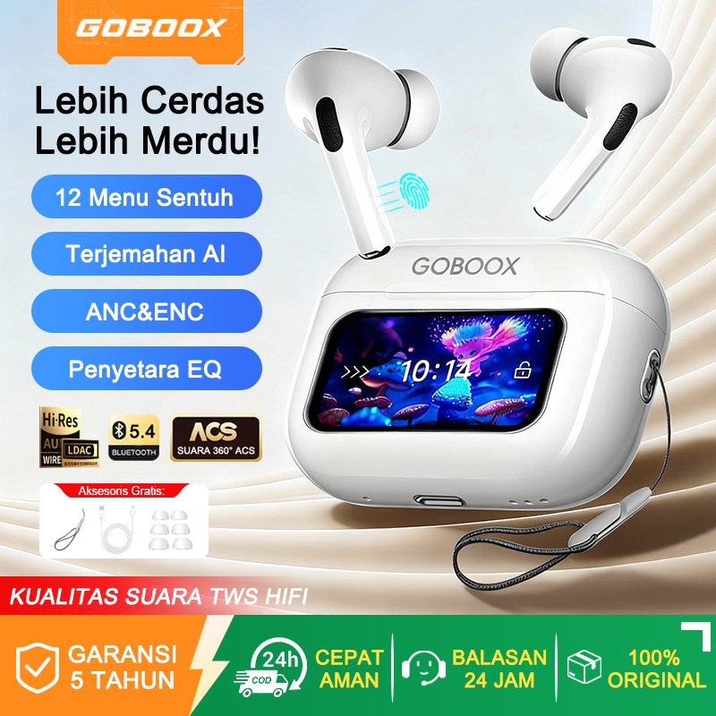 tws goboox headset earphone bluetooth 5.4 wireless / terjemahan ai / anc&enc/ 12 menu sentuh / eq equalizer