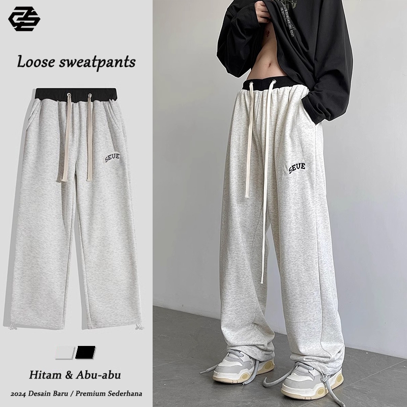Celana Abuabu Pria Celana Hitam Pria Celana Korean Style Celana Panjang Pria Santai Celana Kulot Pria Baggy Pants Loose