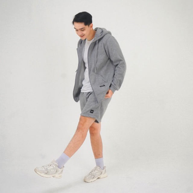 Jaket Pria Keren Steigen Zipper Hoodie Fleece Gray Misty