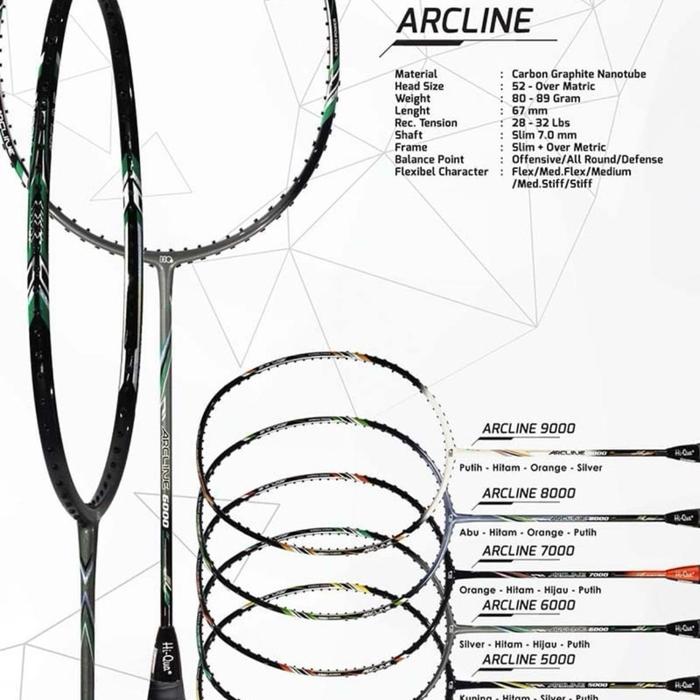 Raket Badminton HIQUA HQ ARCLINE 5000/6000/7000/8000/9000 32 LBS BONUS SENAR FULL SET
