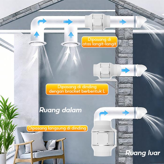 Kipas Angin Buang Diam Ekstraktor 4"6"8" Turbocharged 220V untuk Kamar Mandi & Dapur Peningkatan
