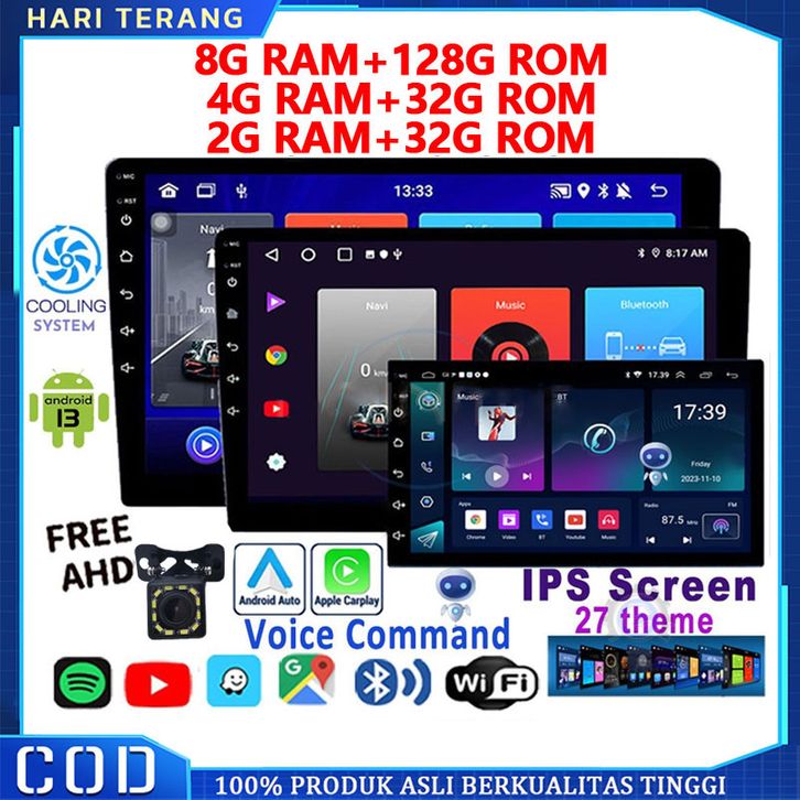 【With Cooling System】8G+128G Android 13 Double Din Head Unit 7/9/10 Inch Ips Screen Car Navigasi Untuk Toyota