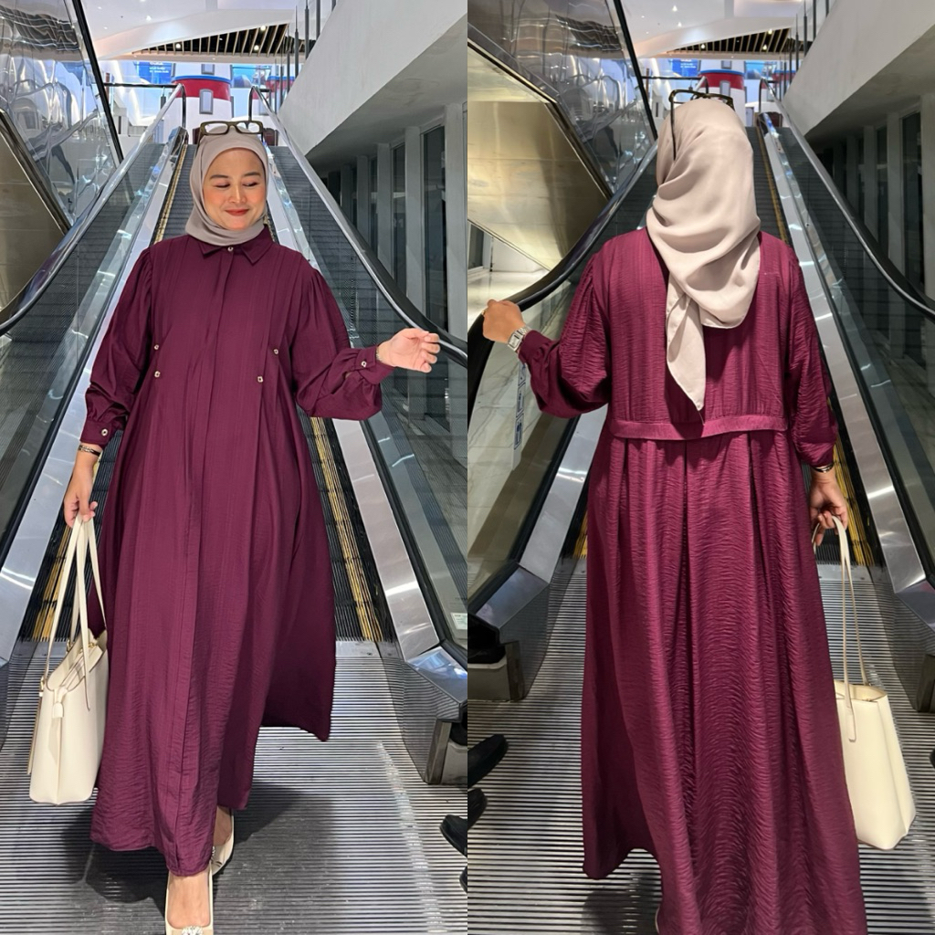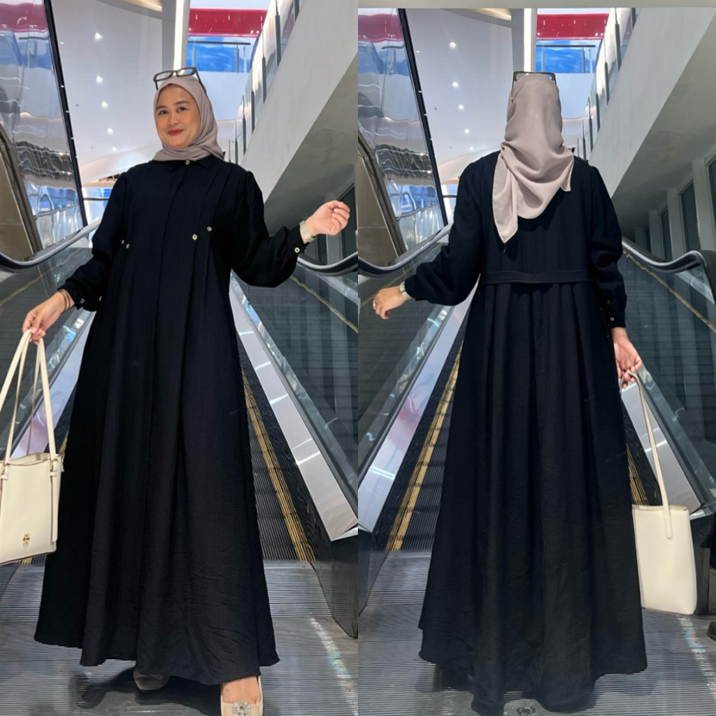 Shareena Dress Lebaran Gamis Katun Polo Linen Premium Ziper Busui Rempel Belakang Mewah