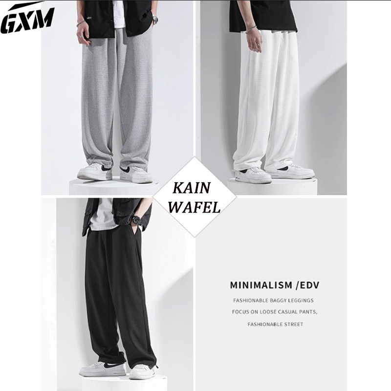 Gxm Celana Joger Polos Pria Kain Wafel Celana Putih Pria Korean Style Unisex
