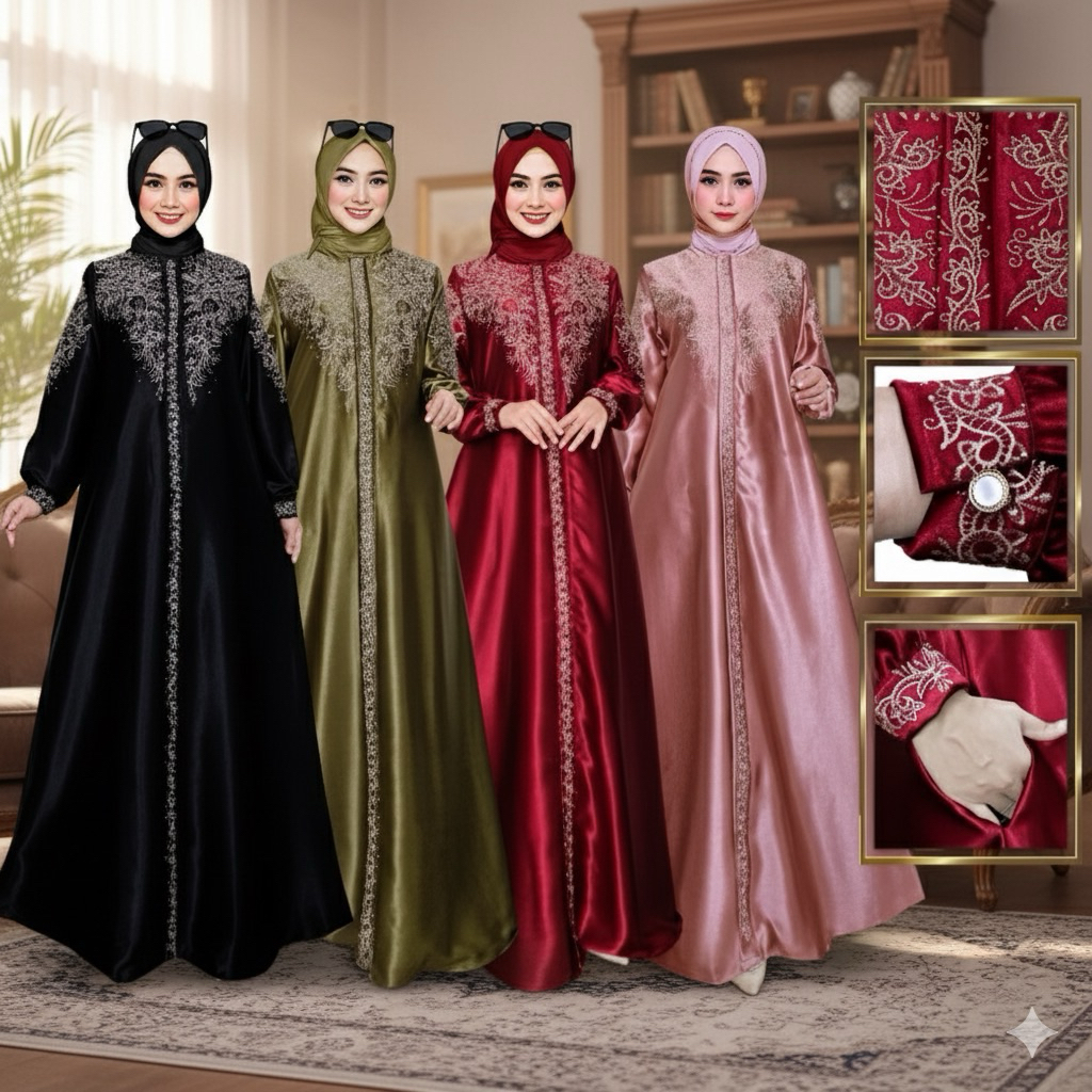 Gamis Kristal Bordir Original Dress Wanita Pesta Kondangan Jumbo Gamis Pesta Bordir Elegan Bisa Seragaman