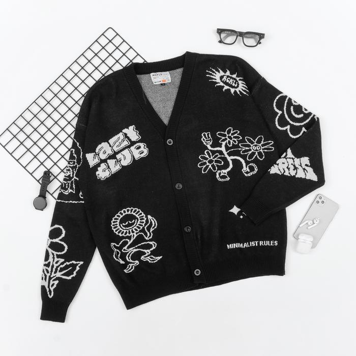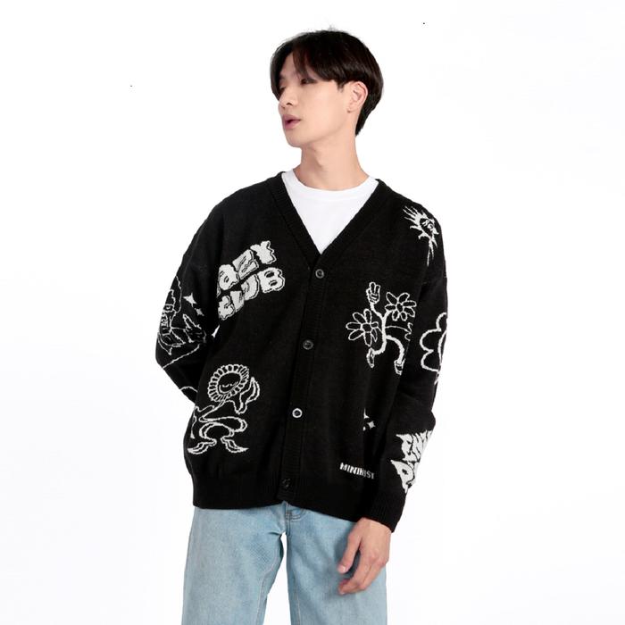 RCKLS.LTD CARDIGAN RAJUT LAZY CLUB KNITWEAR BLACK | BAJU CARDIGAN PANJANG SWEATER KNIT WEAR PRIA HITAM - L