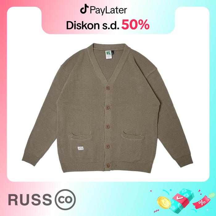 RUSS SWEATER CARDIGAN KNITTING RAJUT TWEED BROWN CREWNECK KNITWEAR PRIA TEBAL KERAH SWEATSHIRT - S