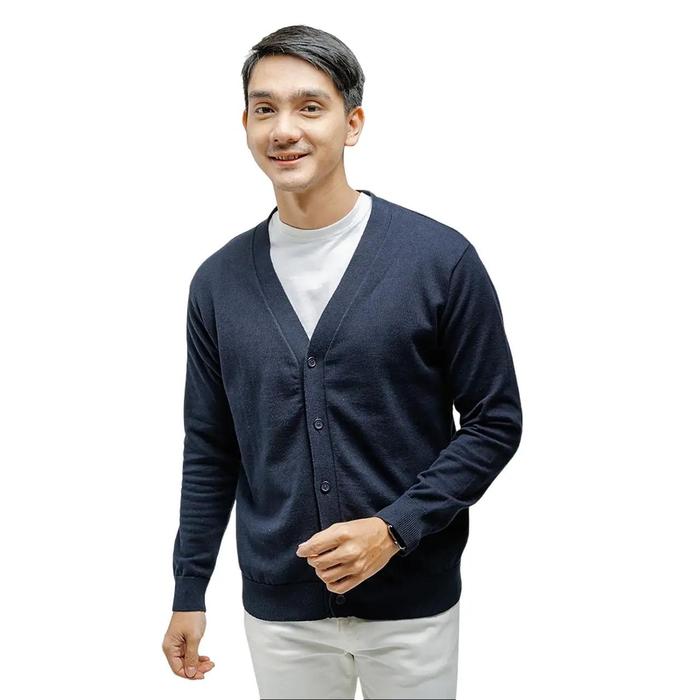 GOMUDA SWEATER RAJUT PRIA CARDIGAN CLEAN KNITWEAR LENGAN PANJANG NAVY - NAVY, L