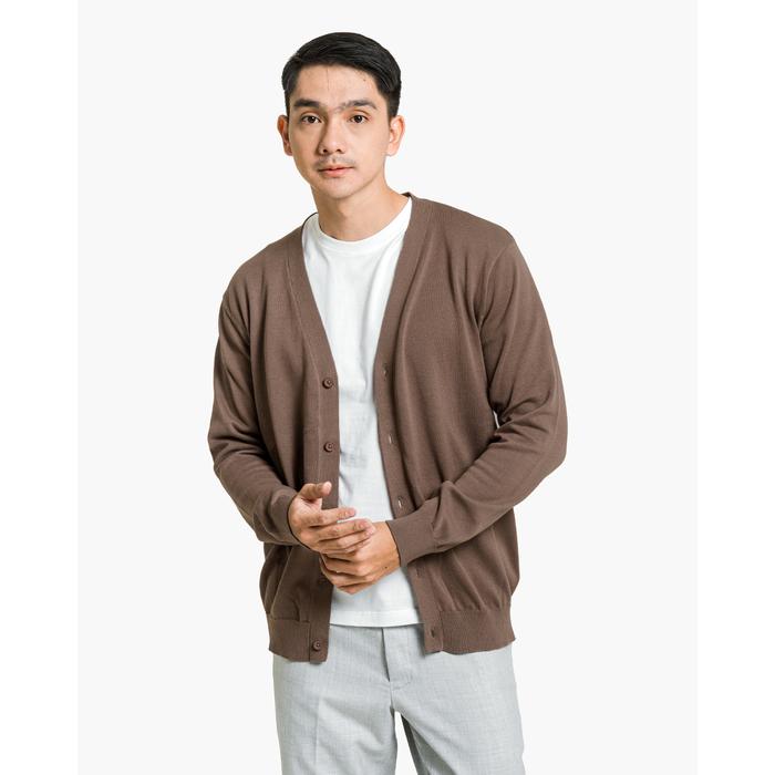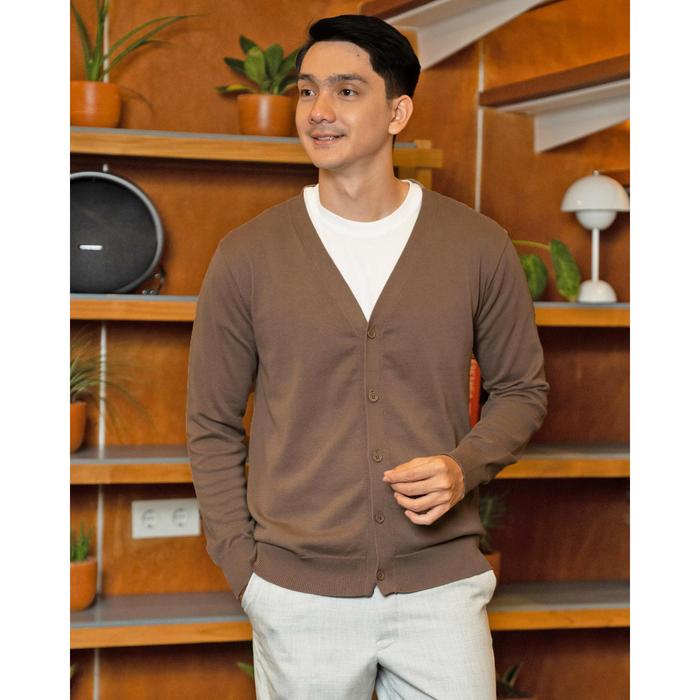 GOMUDA SWEATER RAJUT PRIA CARDIGAN CLEAN KNITWEAR LENGAN PANJANG MOCCA - L