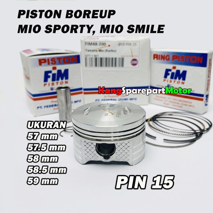 PISTON SET FIM BOREUP 150CC MIO XXB UKURAN 57 57.5 58 58.5 59 PIN 15 - 57MM