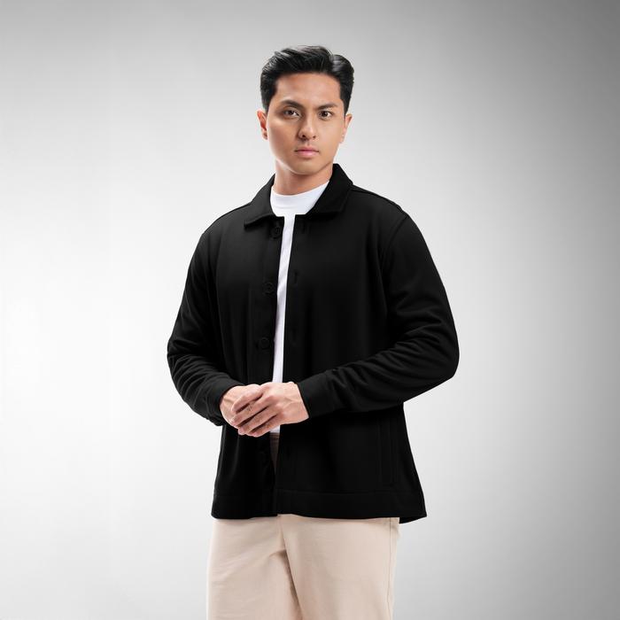 CUTOFF ARVIN OVERSHIRT CARDIGAN DOUBLE KNIT POLY STRETCH OUTER PRIA PREMIUM LENGAN PANJANG - BLACK, M