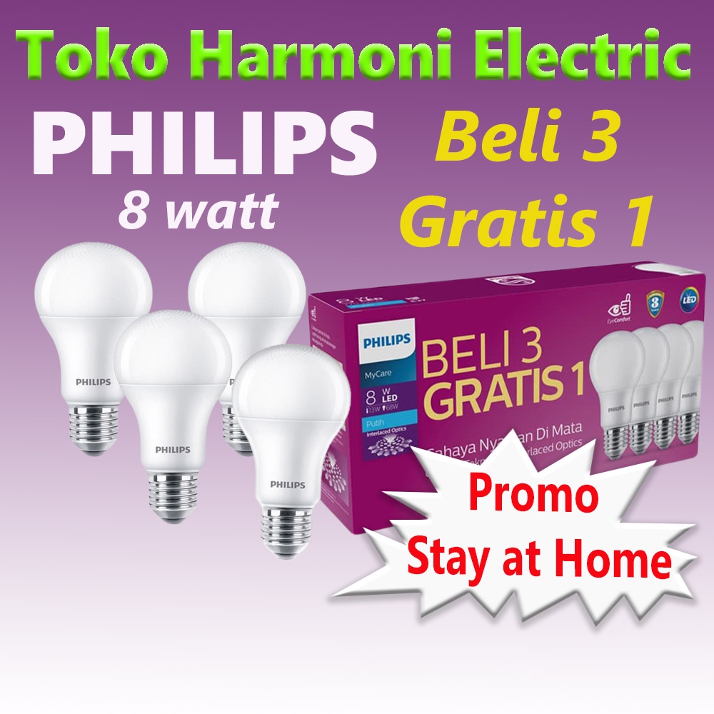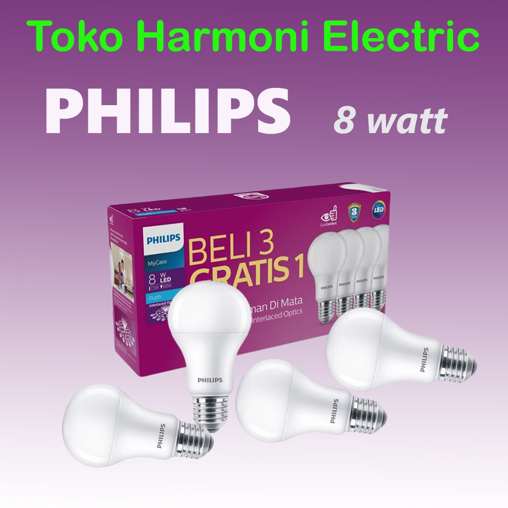 Lampu Philips MultiPack LED Bulb 8W Putih Promo beli 3 Gratis 1