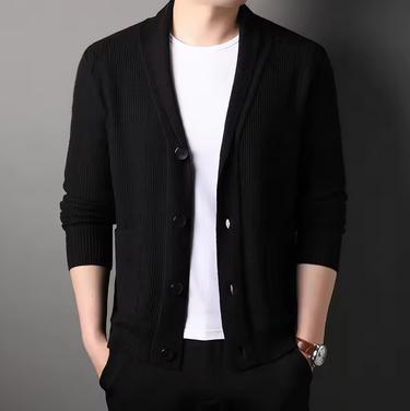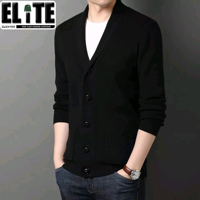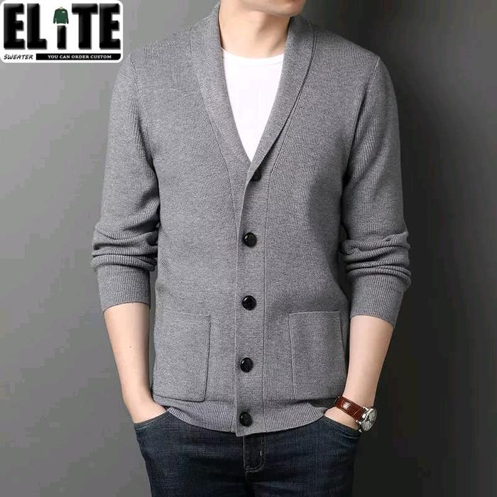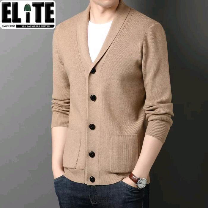 ELITE SWEATER PAKAIAN SETELAN SWEATER RAJUT CARDIGAN KOREAN VERSION KARDIGAN PRIA KERAH+ T-SHIRT WARNA BASIC - CREAM, S