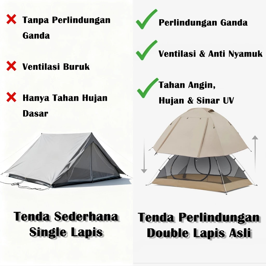 Tenda Camping Dome Double Layer PU 4000mm Waterproof Hiking Backpacking Lightweight Easy Setup