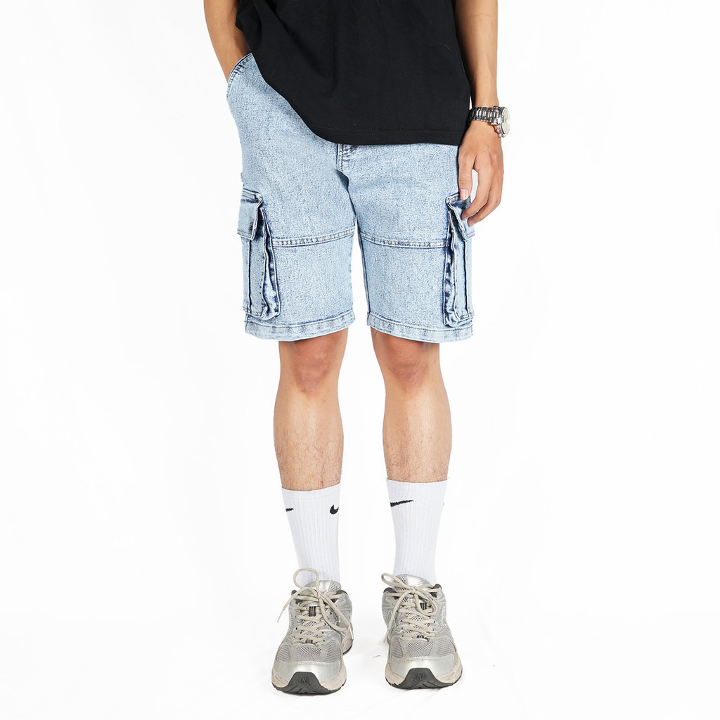 Nvsr Jeans Short Cargo Washed Pants Blue Washed