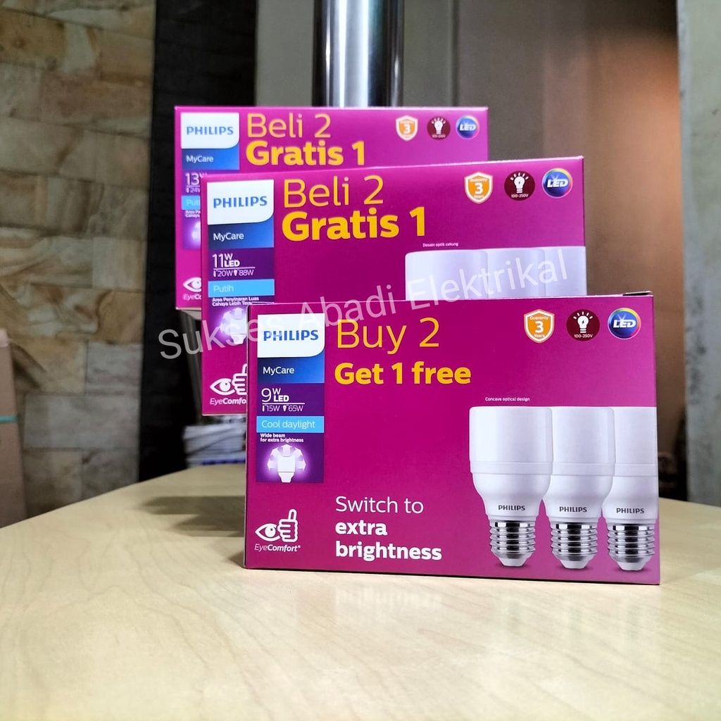 Lampu LED Bright Philips Paket Isi 3 E27 Hemat Energi