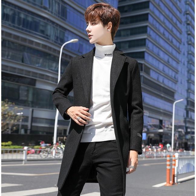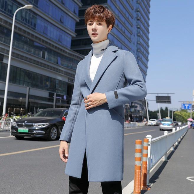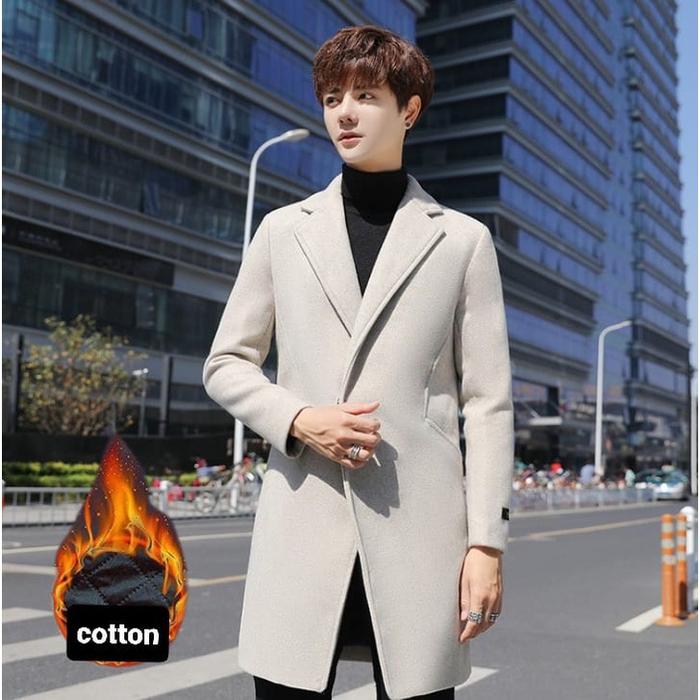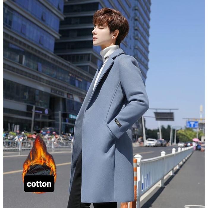 IMPORT HANS MAN AUTUMN SPRING WINTER WOOLEN COAT JAKET PANJANG PRIA MUSIM GUGUR SEMI MUSIM DINGIN LAPIS COTTON - BIRU TUA, 2XL