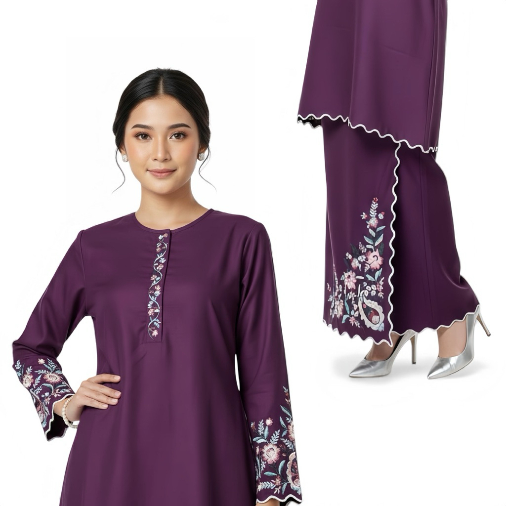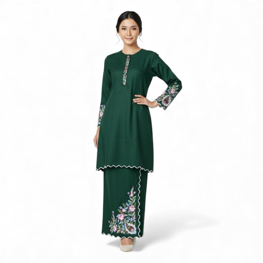One Set RAYANA Bordir Kurung Melayu Terbaru Stelan Rok Muslim Wanita Katun Toyobo Premium