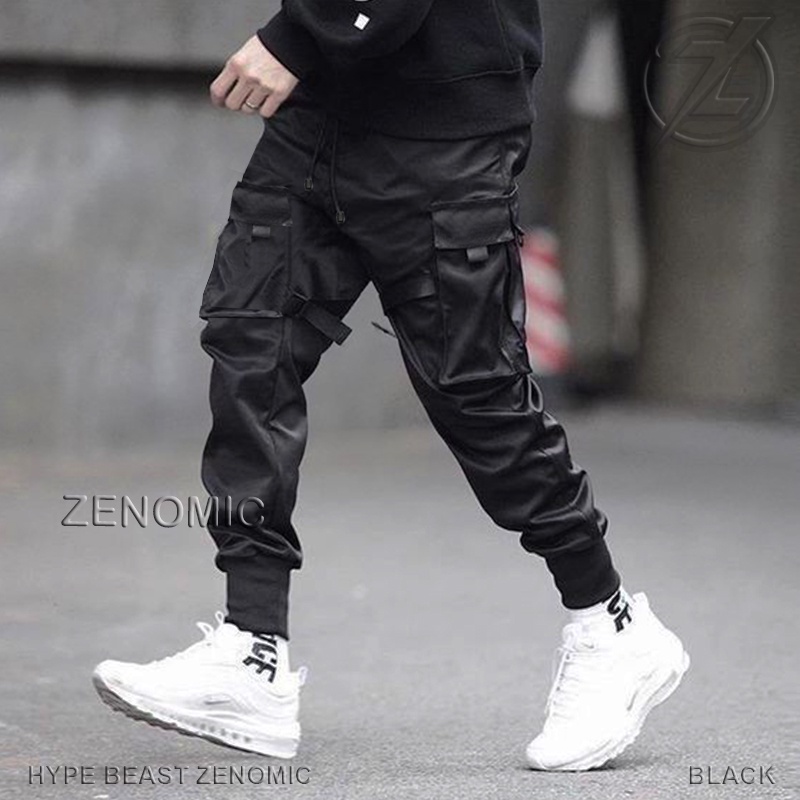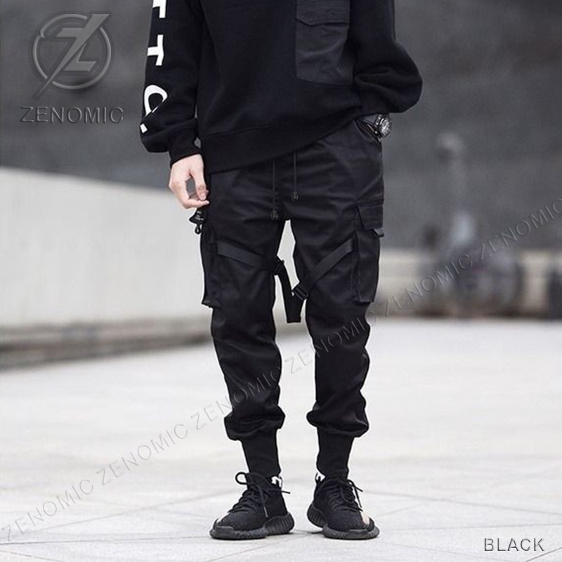 Celana Jogger Pants Hypebeast Pria Zenomic Black Techwear Cyberpunk Cargo Pocket Original Keren Hip Hop Dance Avolet Ver
