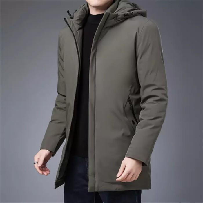 JAKET TEBAL PRIA MUSIM DINGIN LONG COAT/MANTEL MUSIM DINGIN TEBAL - ABU MUDA, S