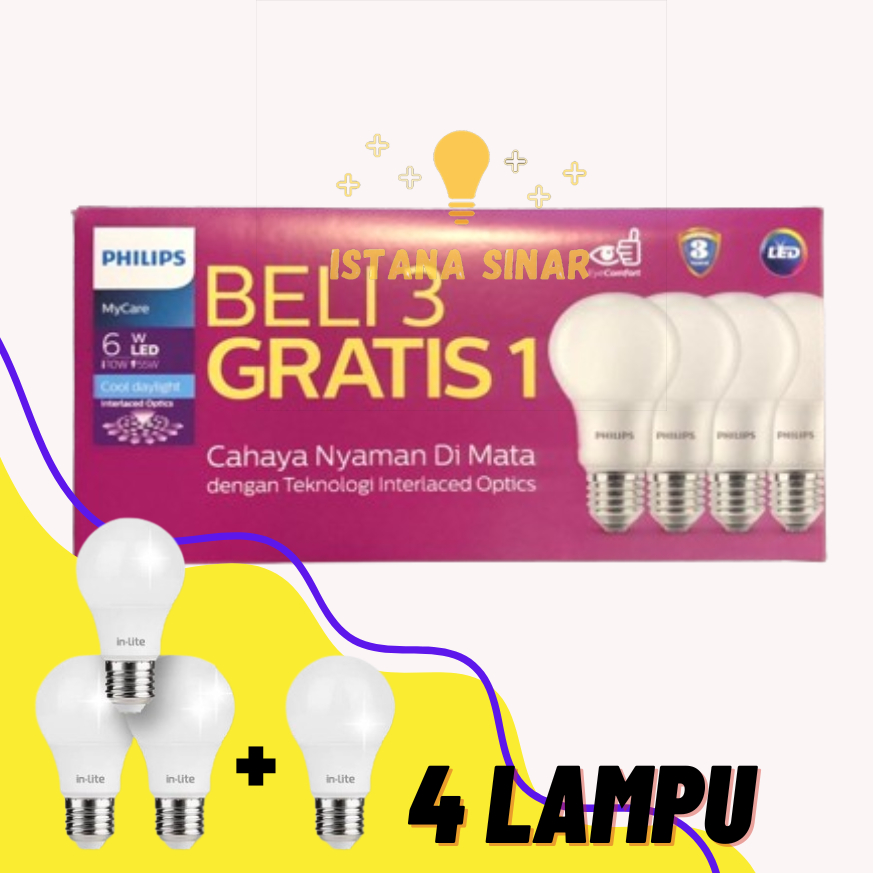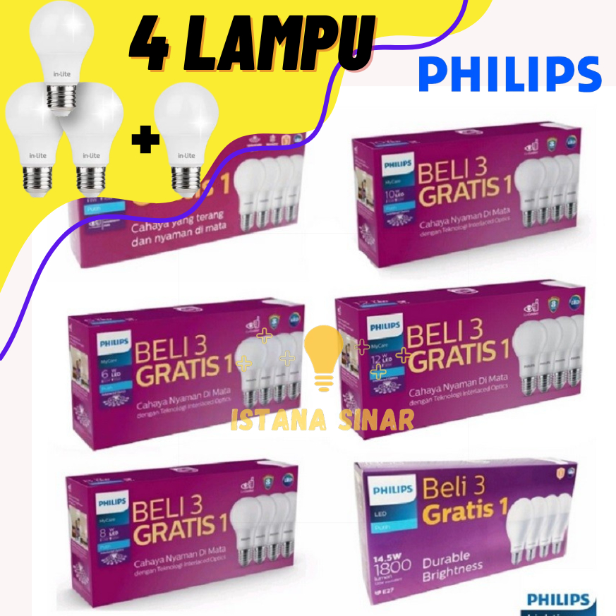 Philips Lampu LED Paket 6 8 10 12 14,5 19 Watt 3Gratis1 Putih Philips Bohlam Led Philips MultiPack