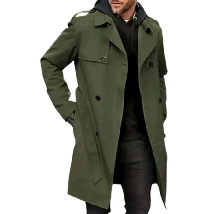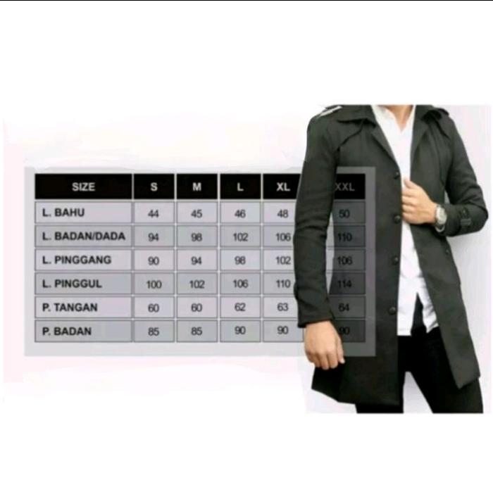 LONG COAT PRIA JUBAH PANJANG KUALITI TINGGI UNTUK GAYA HARIAN - HITAM, S