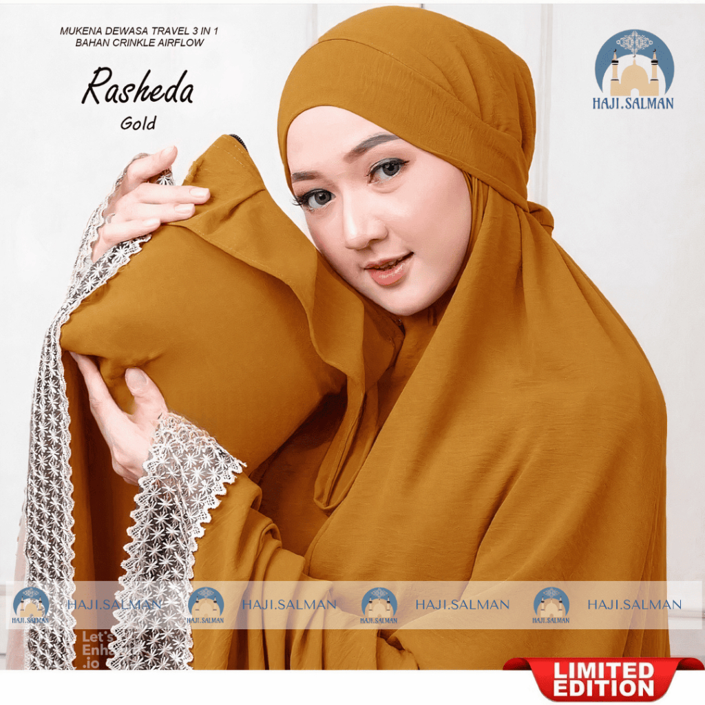 HAJI.SALMAN MUKENA DEWASA CRINKEL AIRFLOW 3IN1 JUMBO RENDA IMPORT RASHEDA