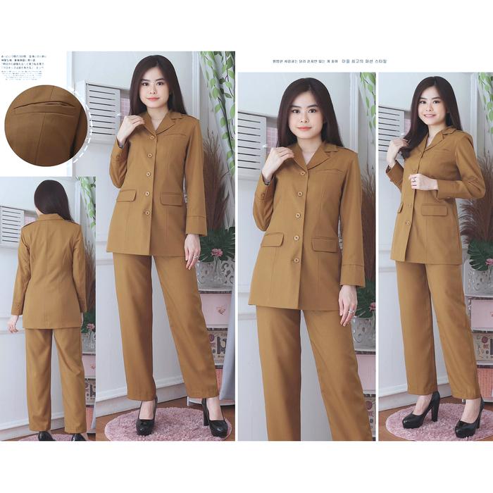 VANERICK / LYNELLE COLLECTION- JAS BLAZER SERAGAM WANITA PEMDA MUDA/KHAKI MUDA/KEKI MUDA STELAN ROK A / ROK SPAN / CELANA GL PNS PDH ASN (KODE 7009) SETELAN PANJANG KERJA - 7009 ROK A PM, S