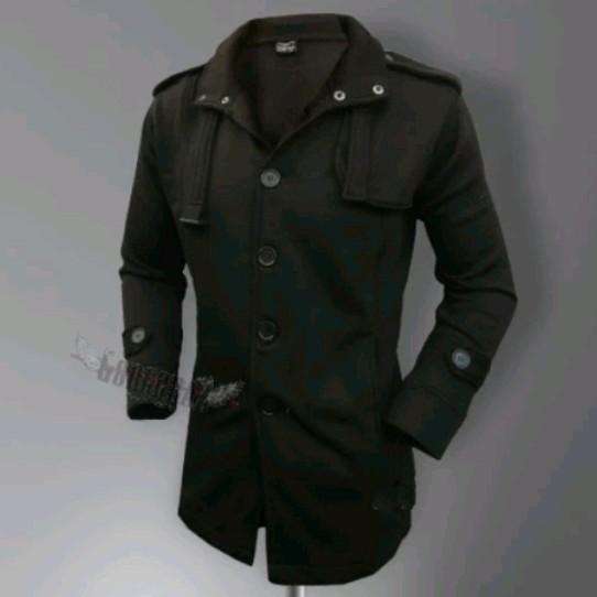 JAKET COAT PRIA MODEL KOREA/JEPANG WARNA HITAM POLOS FLEECE PANJANG TEBAL - BLACK, S