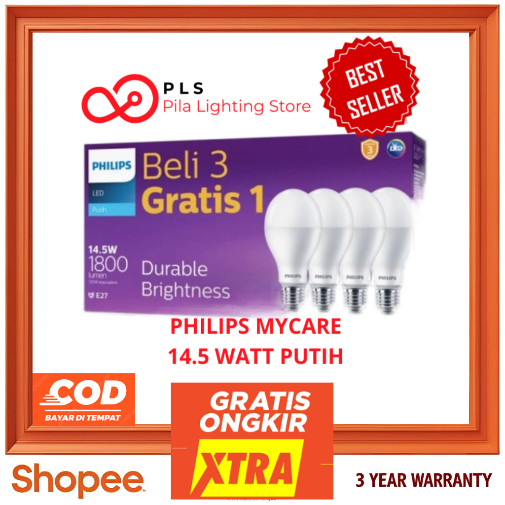 Philips LED MyCare 14.5W Putih Lampu Hemat Energi Terang Awet Garansi 3 Tahun Beli 3 Gratis 1