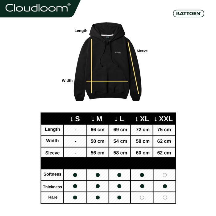 KATTOEN - CLOUDLOOM JAKET BLACK JUMPER HOODIE POLOS 280 GSM - PULLOVER, M