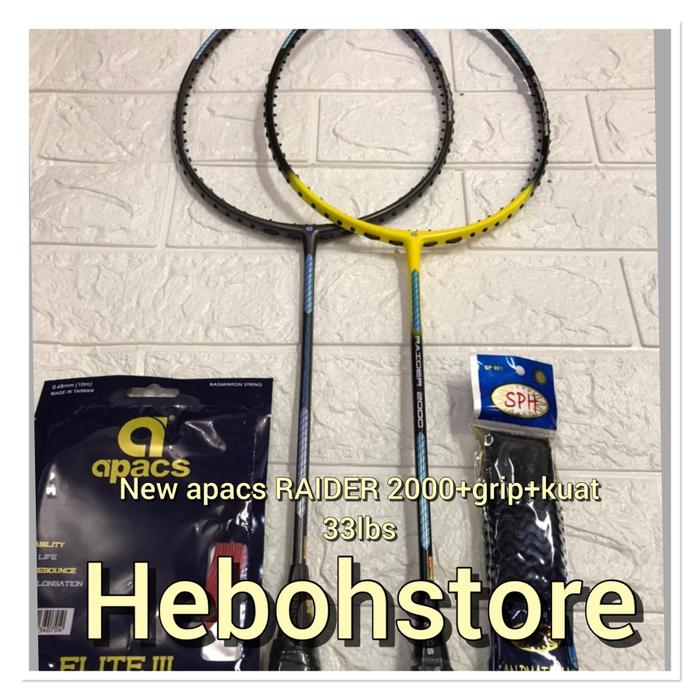 Raket Badminton NEW APACS RAIDER 2000 33 lbs+senar apacs+grip ORIGINAL