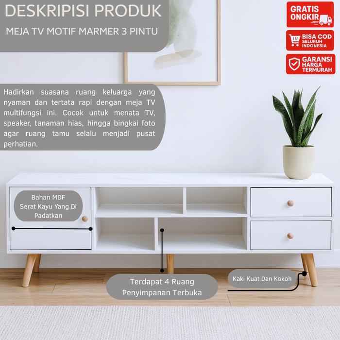 Lemari TV Motif Marmer - Lemari TV Serbaguna Minimalis Estetik Bufet TV - Lemari TV Kayu Modern