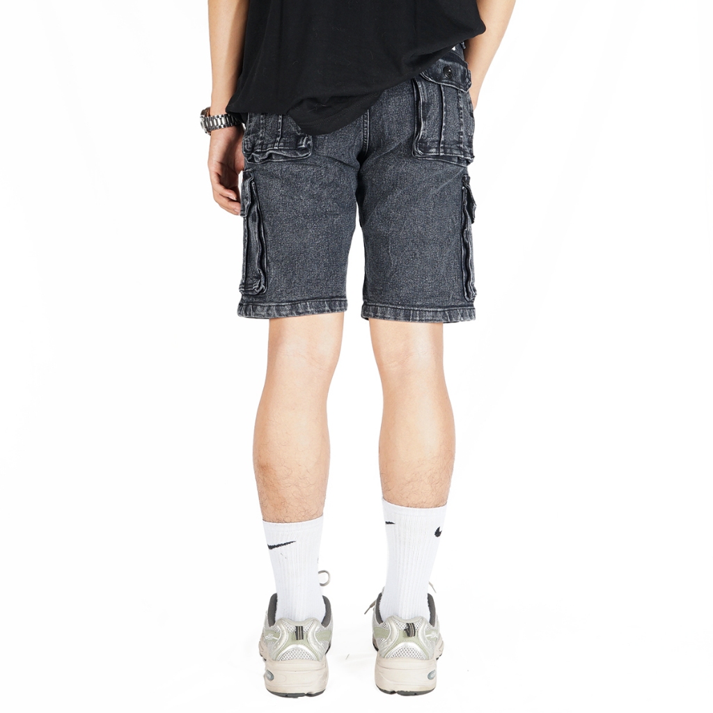 Nvsr Jeans Short Cargo Washed Pants Black Washed