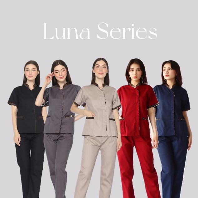 [RENNE] BAJU SERAGAM BABY SITTER BATIK LUNA SHORT SLEEVE / BAJU NANNY BATIK / BAJU SUSTER BATIK / BAJU KLINIK BATIK MURAH - NAVY, S