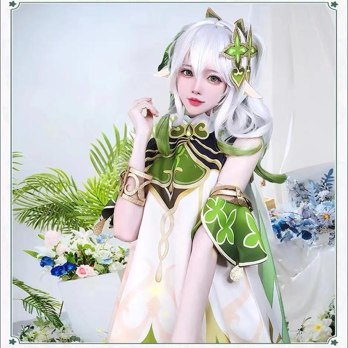 【READY STOCK】GENSHIN IMPACT NAHIDA COSPLAY COSTUME UNTUK WANITA - SETELAN TRENCH SHORTS DRESSES CAPE DAN HEADGEAR - BAHAN SINTETIK - SIAP STOK - FASHION - FULL SET + WIG, KIDS 130CM