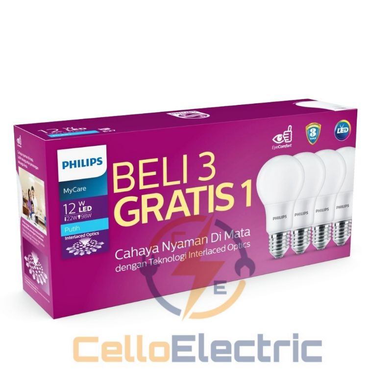 Led Philips Multipack 12 W Beli 3 Free 1 6500K MyCare Led Pack Philips 12 Watt Paket Beli 3 Gratis 1