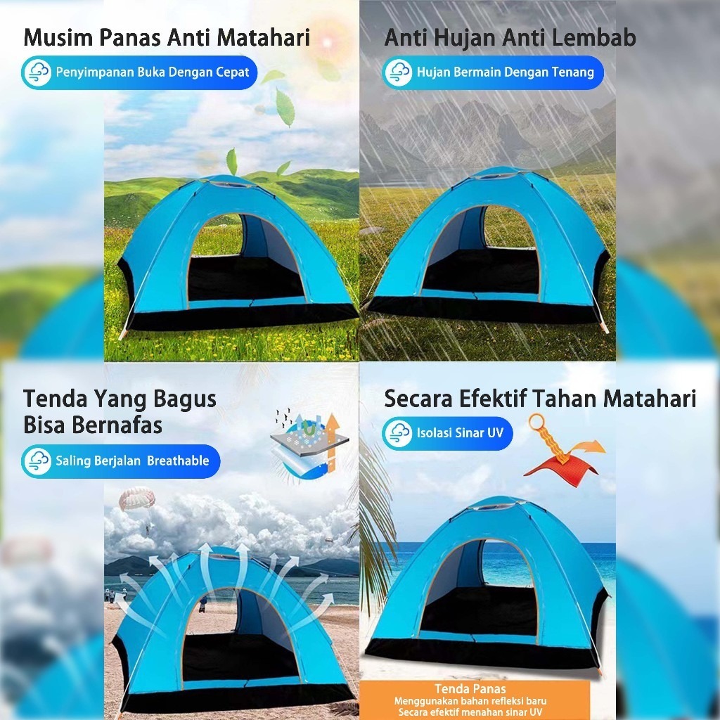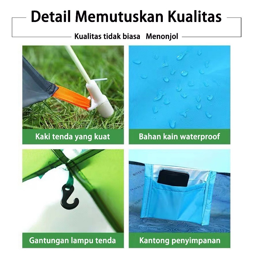 Tenda Camping Kapasitas 3-4 Orang & Indoor Tenda Gunung 200x150x110CM Tenda Otomatis door