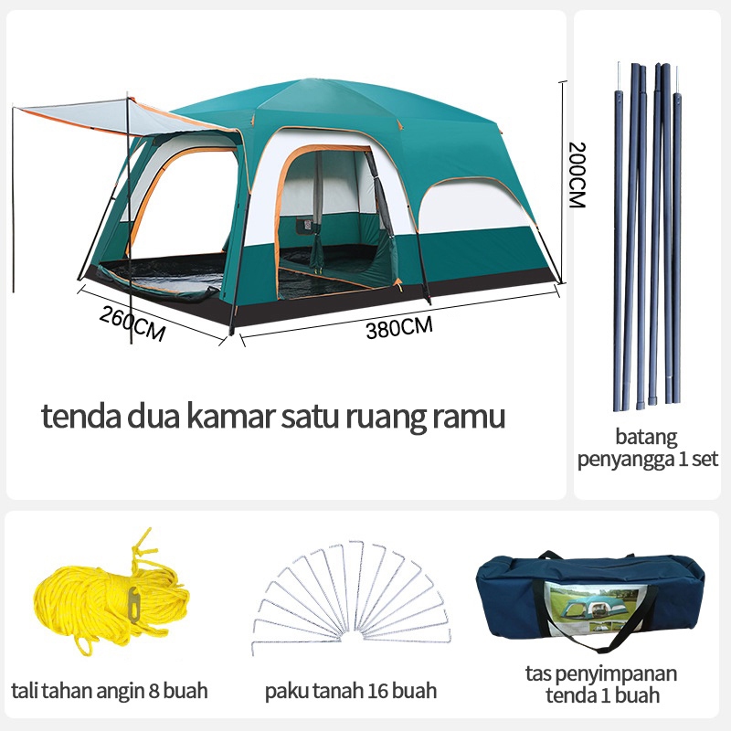 New Tenda Camping Kapasitas Luas 5-8 Orang Lipat Portable Waterproof Anti Air door Tenda Gunung