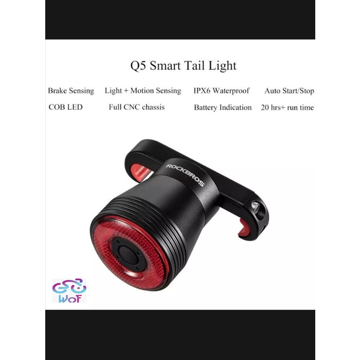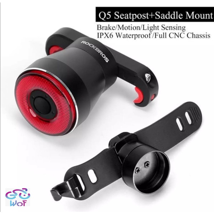 Terbaru ROCKBROS Q5 TL907Q50 Lamp + 2 Bracket Braket Lampu Belakang Sepeda Alloy Taillight Bike Smart Sensor Bicycle Tai
