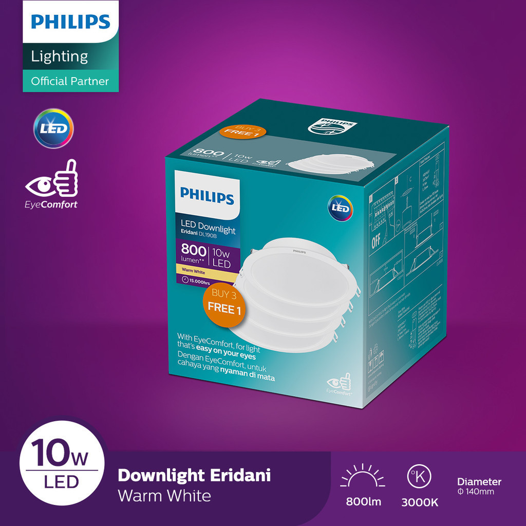 Philips Lampu Panel Downlight Eridani Multipack DL190B LED8 D125 10W Kuning