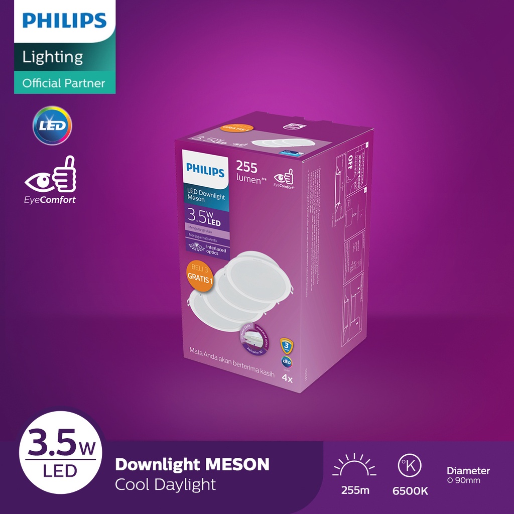 Lampu Philips Downlight 59441 Meson Multipack D90 3.5W 65K G5 Cahaya Putih
