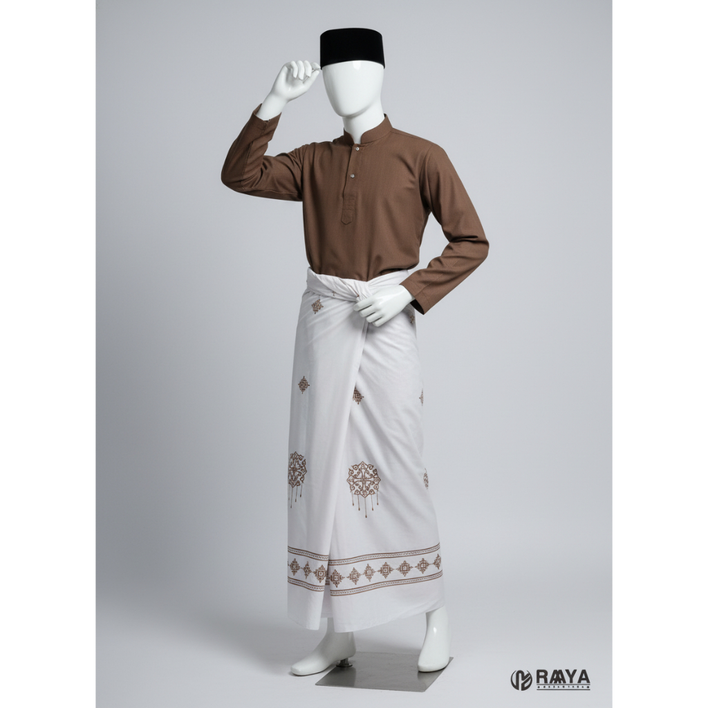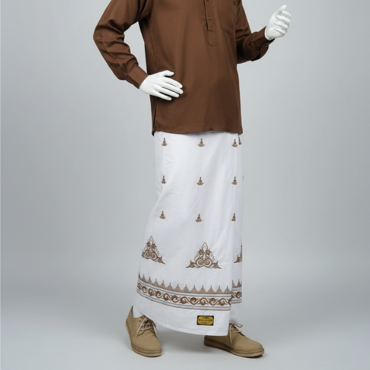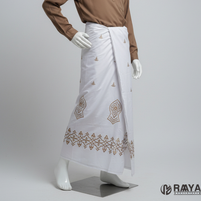 Wadimor- Sarung Bordir Warna Putih motif trompah bali gayo dan sultan